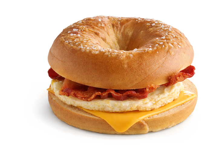 Fresh cracked egg, American cheese and your choice of bacon, ham or sausage. Available at participating locations.